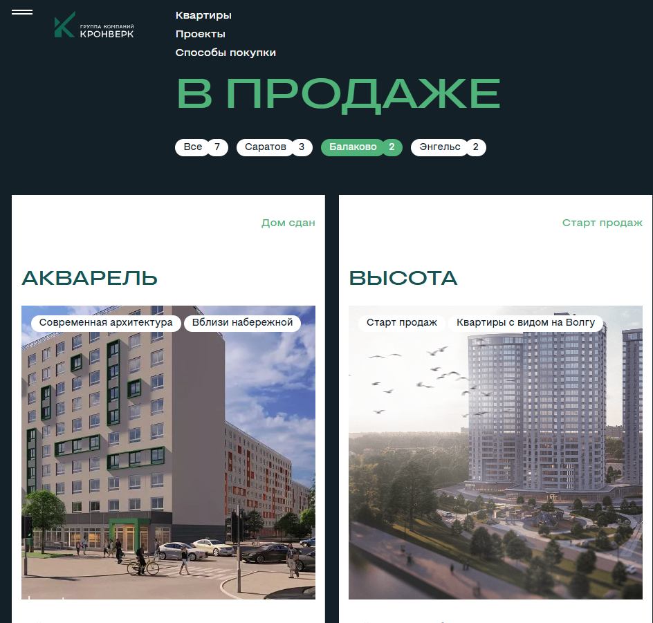 В Балакове начался старт продаж квартир в жилом комплексе «Высота» от компании «Кронверк», об этом сообщил официальный сайт застройщика.