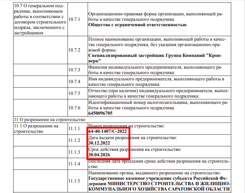Там же любознательный покупатель может ознакомиться с проектной документацией. Нас интересует номера разрешения на строительство: как видим они не изменились и выданы еще в 2022 году и действуют до 2026 года по первому объекту.
