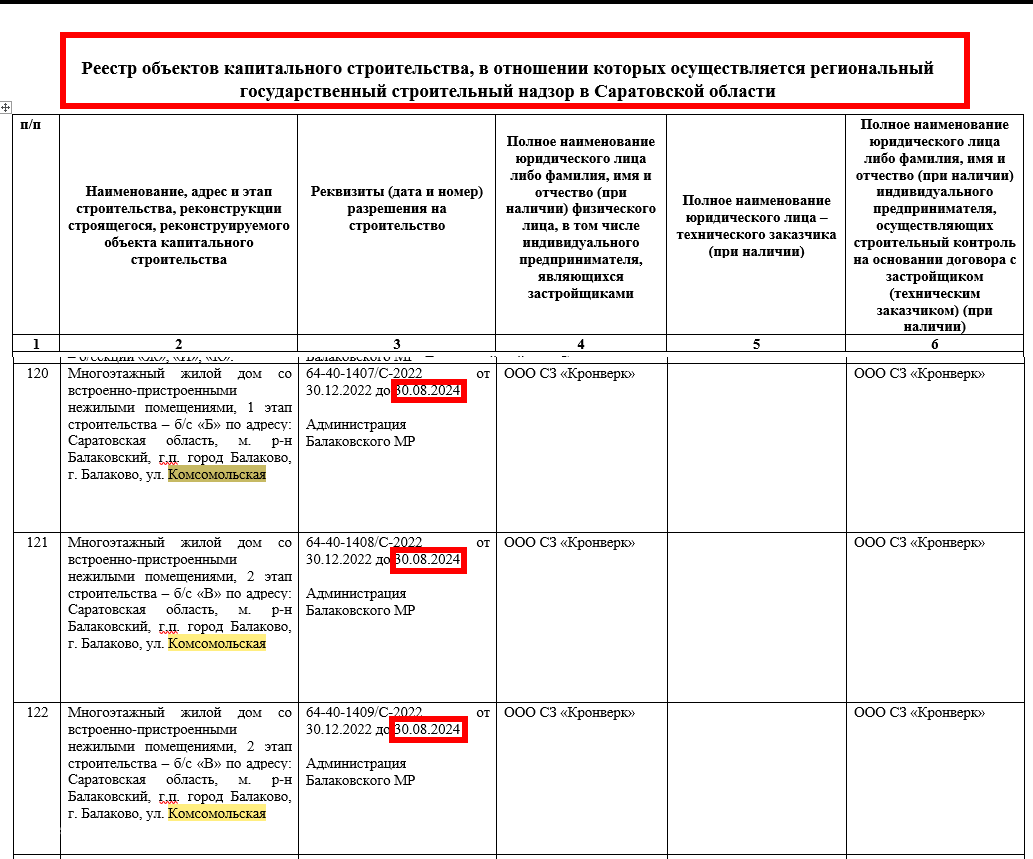 Но в реестре объектов капитального строительства, размещенного на сайте министерства строительства и ЖКХ Саратовской области немного другие данные: