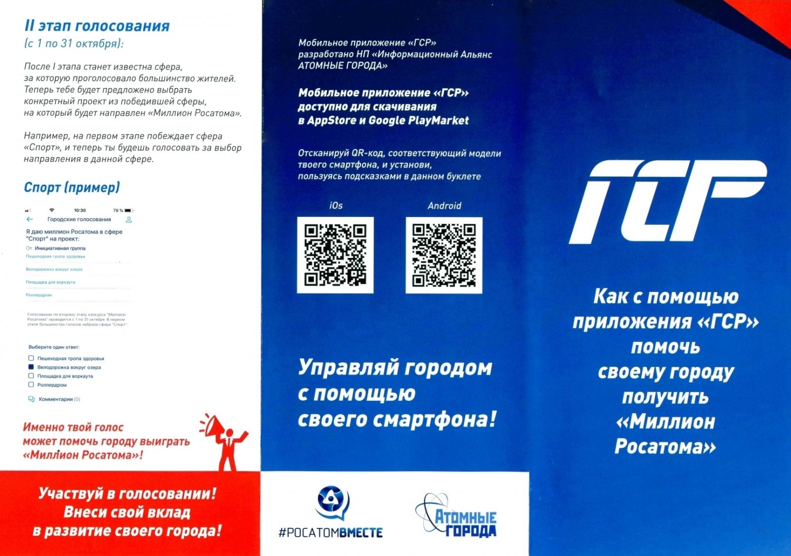 Конкурс будет состоять из двух этапов. Первый стартует с 20 августа и продлится до 20 сентября. За это время нужно будет найти в приложении голосование «Я даю миллион Росатома на развитие своего города в сфере». Далее необходимо будет выбрать один из предложенных вариантов и оставить в комментариях свой ответ на вопрос «Чем я готов помочь своему городу?».