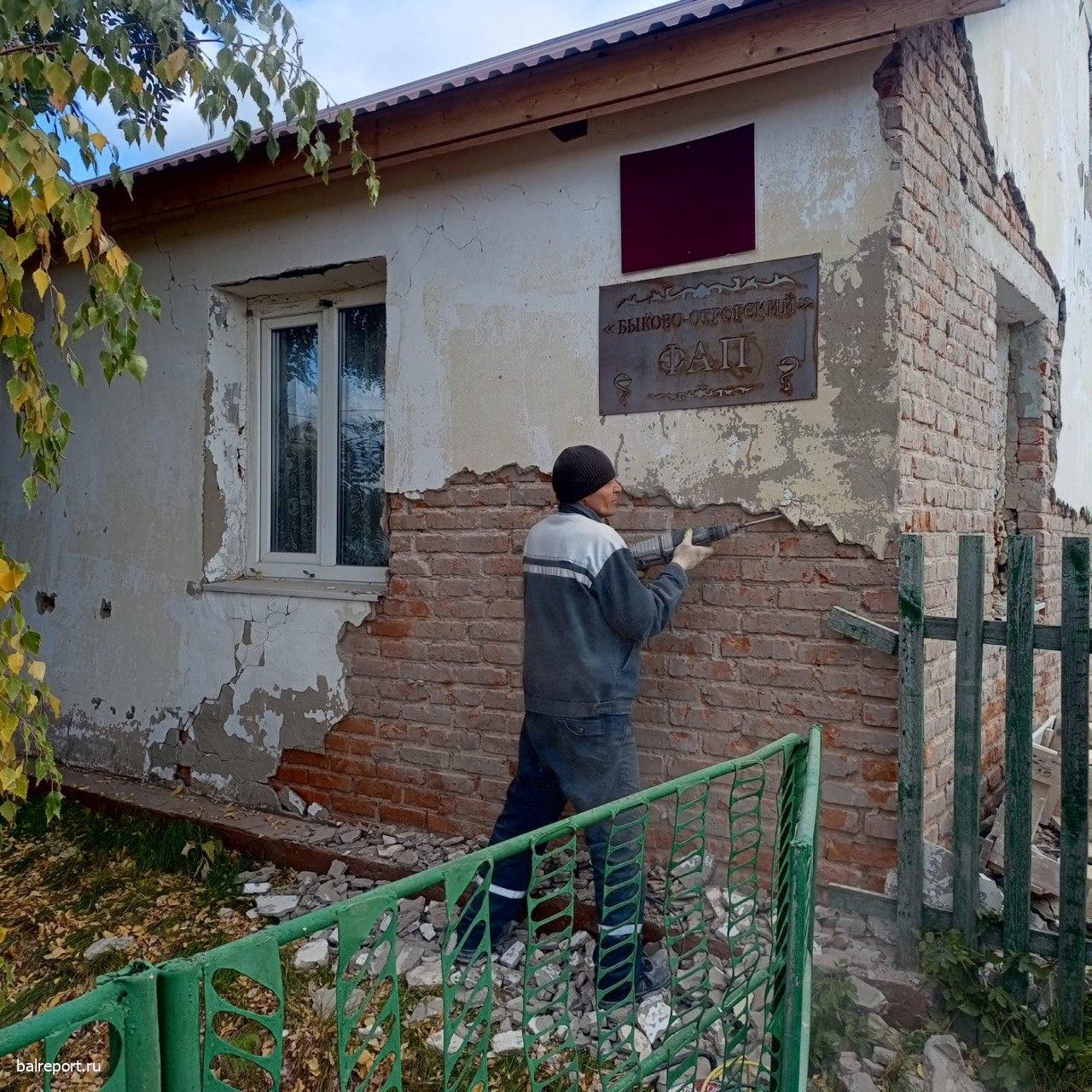 В селе Быков Отрог проводится капитальный ремонт фасада фельдшерско-акушерского пункта. Это стало возможным при благотворительной поддержке от МЗ Балаково. Уже снята старая штукатурка и рабочие приступили к укреплению фасадной части.