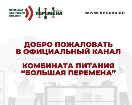 У комбината школьного питания «Большая перемена» появился канал в Телеграме https://t.me/bpcardru. Здесь работники компании будут делиться событиями из работы комбината, важными новостями по работе школьных столовых, а так же принимать замечания и предложения по работе «Большой перемены» и столовых школ.
