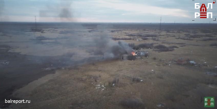 Чёрный столб дыма виден сегодня даже из города. Возгорание произошло на несанкционированной свалке на территории заброшенных дач рядом с РТИ. Судя по выжженной траве, пожары здесь происходят периодически. Видны участки, где жгли рубероид, резину.