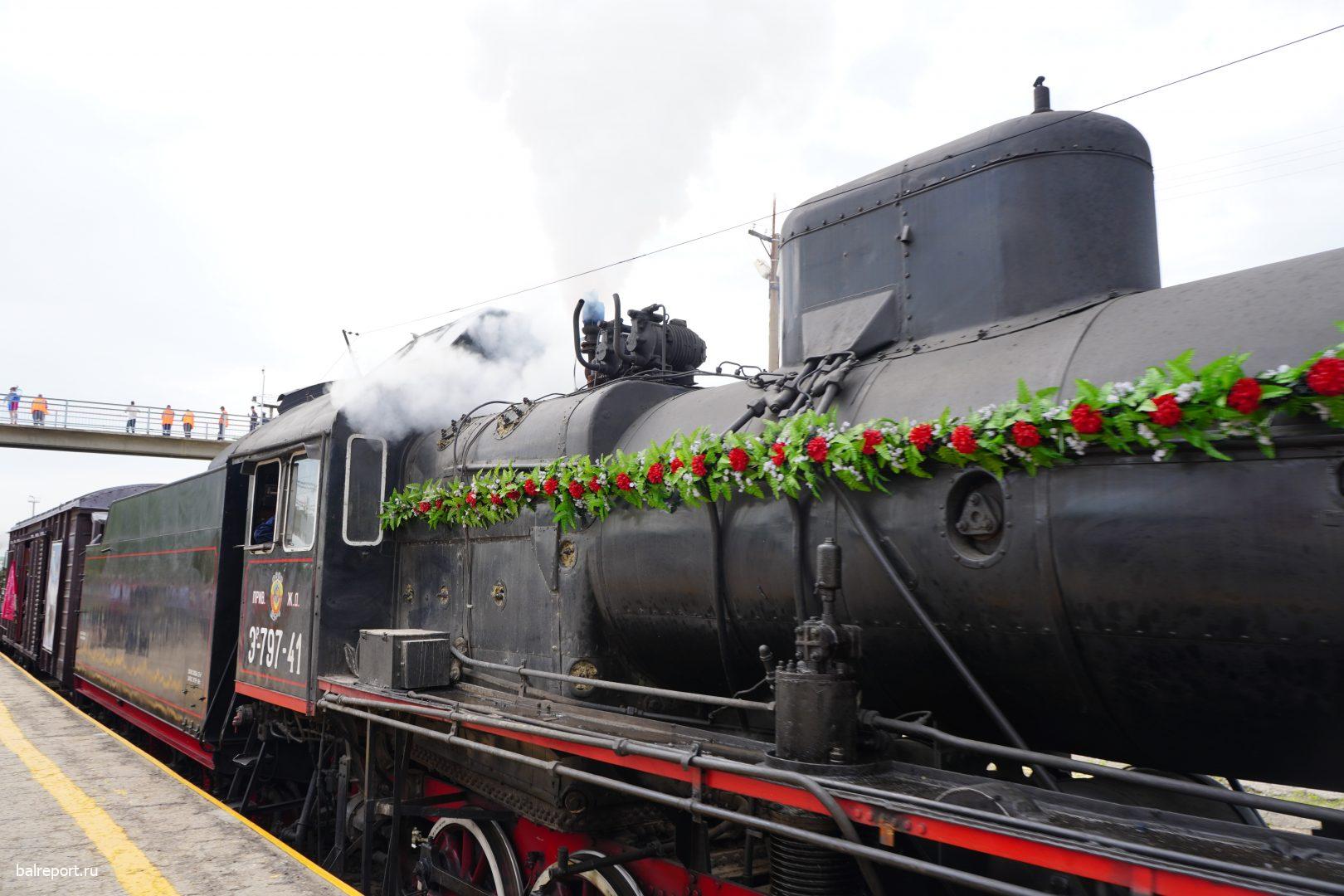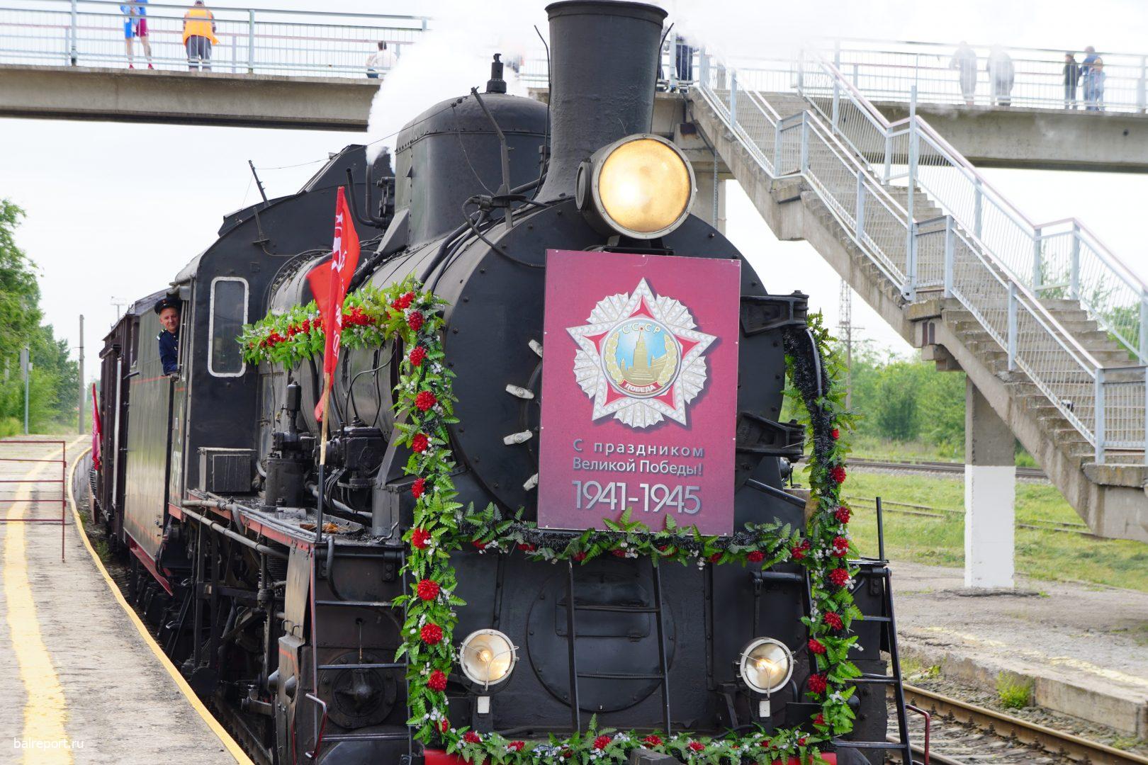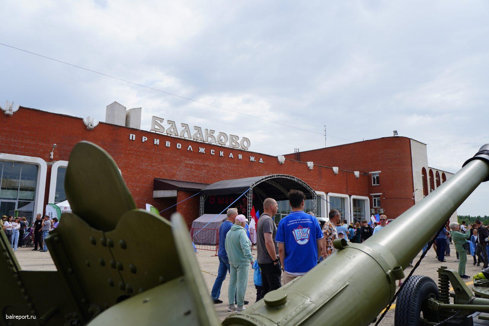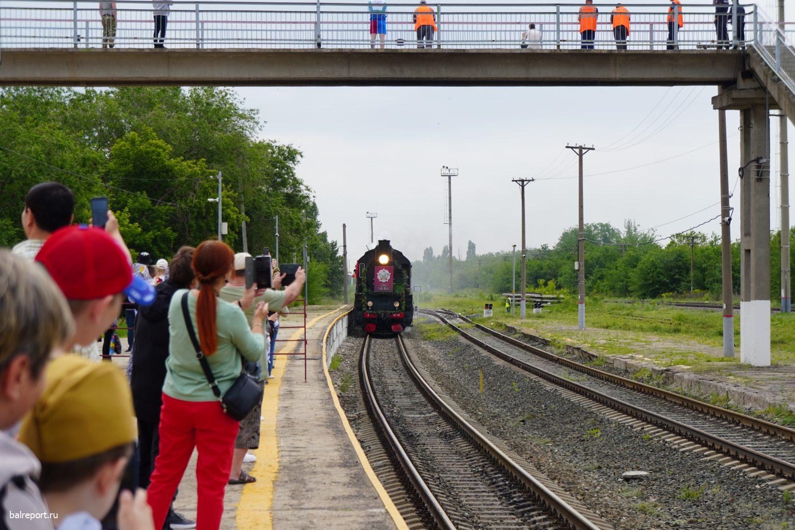 Сегодня на железнодорожный вокзал Балакова прибыл необычный поезд — «Воинский эшелон». Ретропоезд сформирован из двух действующих паровозов и шести платформ, на которых представлена военная техника. Наш город встретил состав праздничным концертом — артисты Городского центра искусств исполняли песни военных лет.