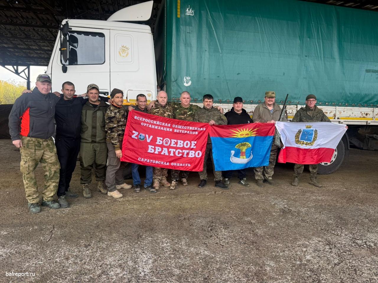 Михаил Усталов, а также депутаты Совета города Балаково Юрий Мезенцев, Дмитрий Шевченко, Сергей Василенко и депутат Совета Березовского МО Петровского муниципального района Замбек Магомадов проехали по маршруту и передали нашим ребятам посылки из дома, маскировочные сети, средства разведки, технику, запчасти и строительные материалы.