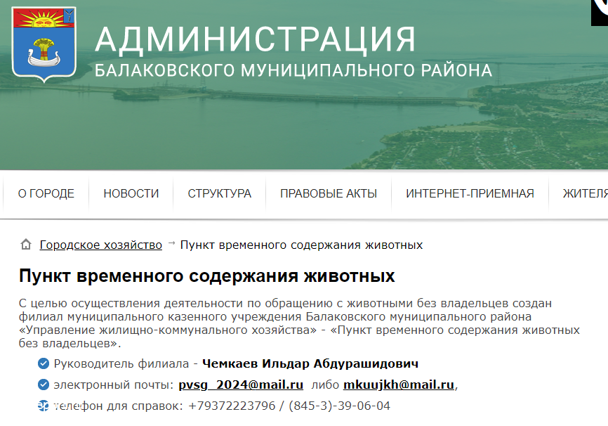 Есть в городе Балаково такая организация — муниципальное казенное учреждение «Управление жилищно-коммунальным хозяйством». Из самого названия становится понятно, что именно входит в сферу ее деятельности. Сайт администрации БМР подтверждает наши выводы: «МКУ «УЖКХ» создано с целью  реализации полномочий органов местного самоуправления в части формирования единой отраслевой политики на территории Балаковского муниципального района Саратовской области в сфере жилищно-коммунального хозяйства». К структуре этой организации относится и Пункт временного содержания животных. Правда, не очень понятно, как это закреплено нормативными документами и насколько это соотносится с уставной деятельностью учреждения, но это факт.