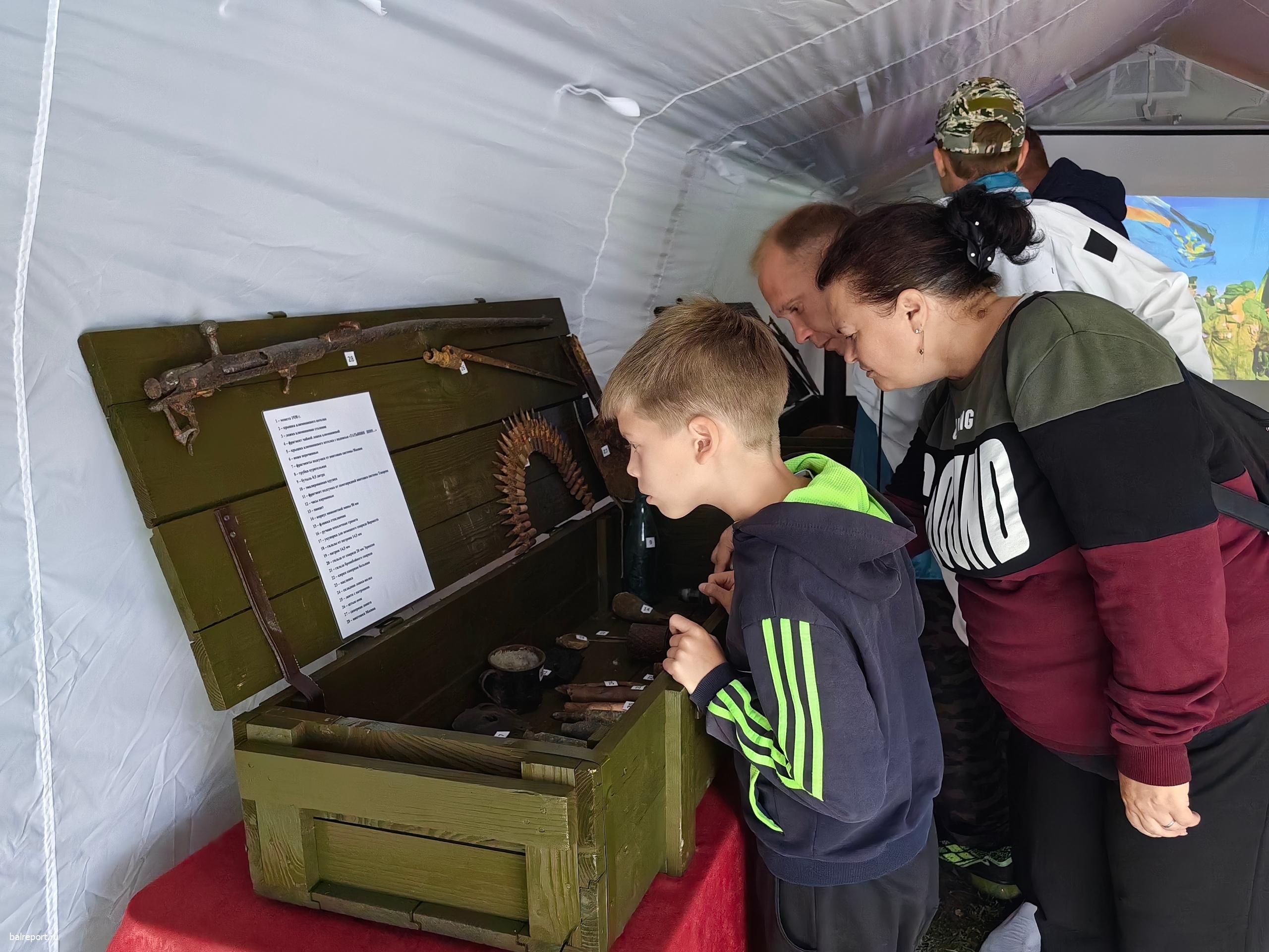 Посетители смогли сами попробовать поисковую работу с использованием металлодетекторов, щупов и саперных лопат, а также сфотографироваться в костюмах и с предметами военной эпохи.