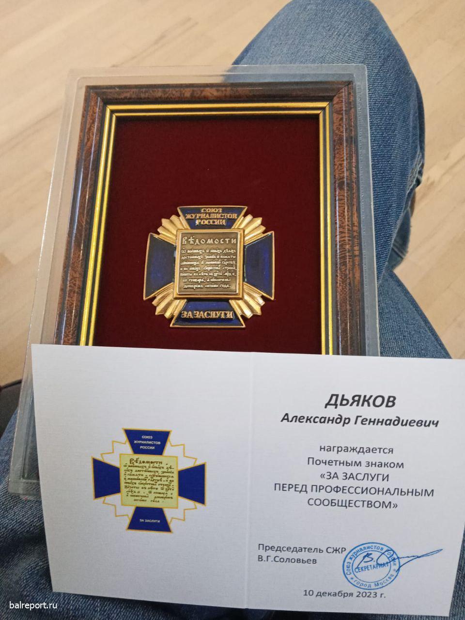 Александр Дьяков награжден «Почётным знаком» Союза журналистов России