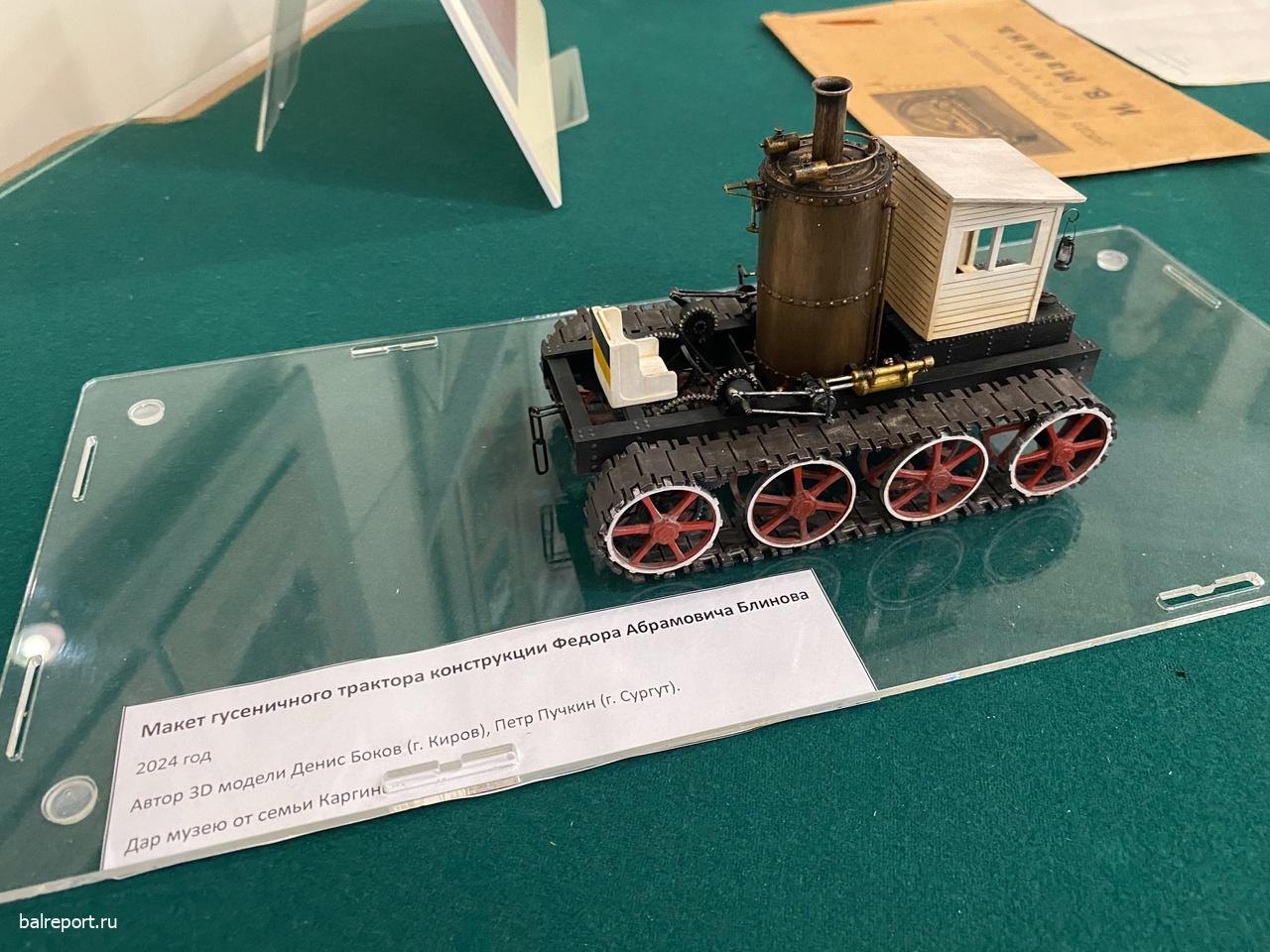 Макет самохода Фёдора Блинова занял своё место в постоянной экспозиции Музея истории г.Балаково. Этот хрупкий экспонат установлен на рабочем столе Ивана Васильевича Мамина рядом с комплексом, посвящённым изобретателю Фёдору Блинову.