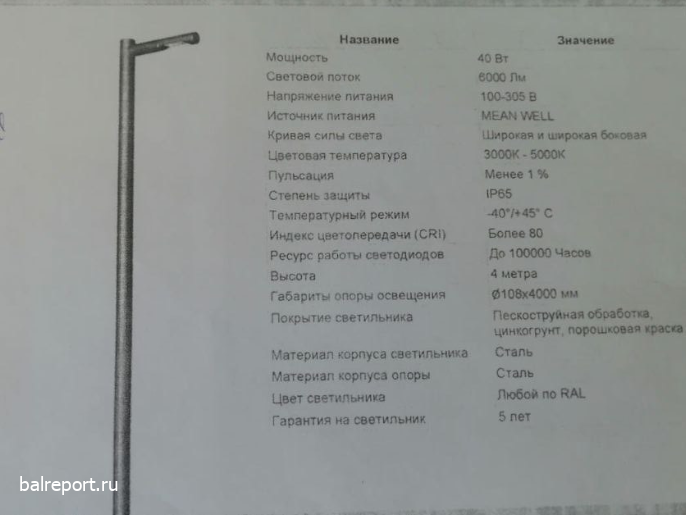 Поскольку присутствуют спонсорские средства, подразумевается и жесткий контроль за расходованием денежных средств и последующим результатом. Конечно, перед запуском строительства идет огромная работа: формирование заявки, создание проекта, предварительный выбор материалов и товаров. И «Сиреневый сквер» не стал исключением: на внутренних совещаниях между администрацией и спонсором обсуждалось все, в том числе фонари. И вот какие прекрасные осветители были внесены изначально в смету.