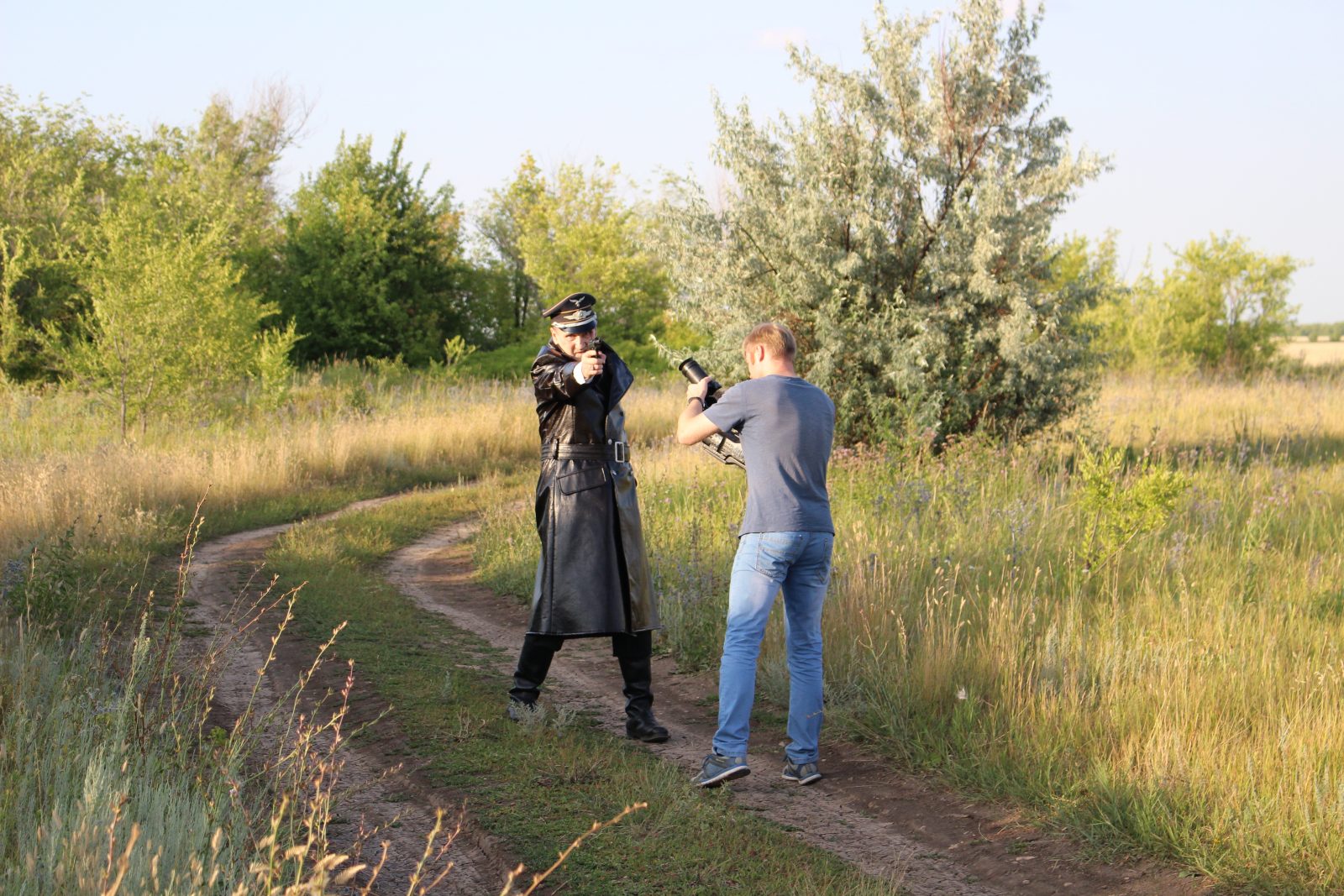 Договорились встретиться вечером у Балаковского театра юного зрителя. Ровно в назначенное время меня уже ждали. Стоило только подойти, сразу слышу команду: «Всё, выезжаем, времени не так много!». На ходу задаю вопрос: «Что снимаете сегодня?». Получаю ответ: «Сегодня работы много, снимаем захват немецкого полковника отрядом Ерошкина». Чувствую, что вечер предстоит интересный.