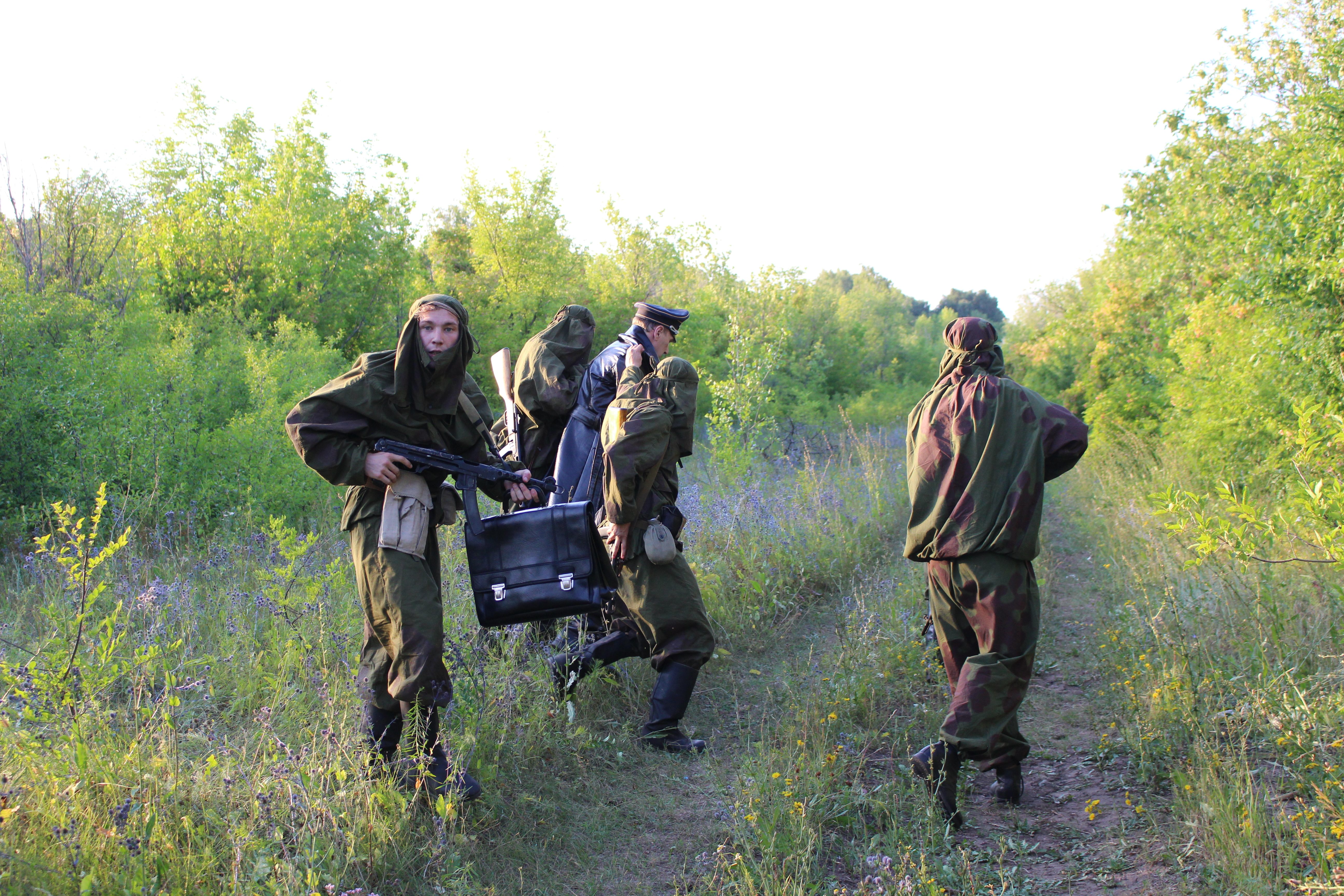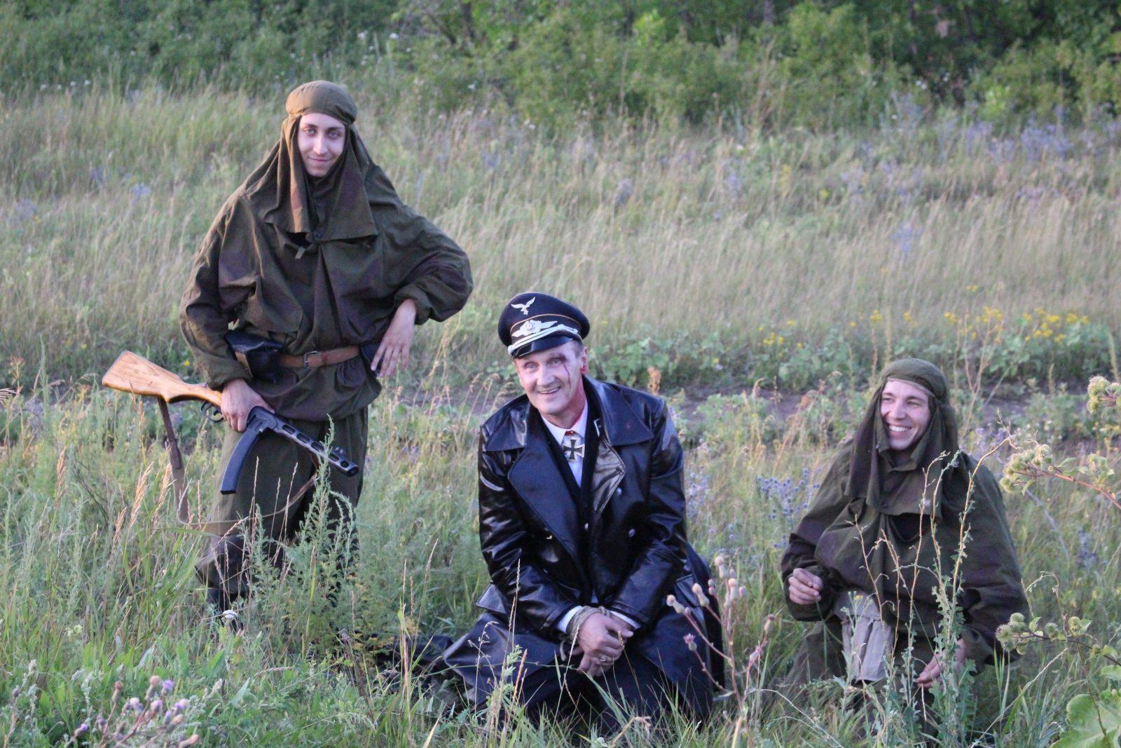 Солнце начинает садиться. Вся команда в напряжении: нужно успеть снять основные сцены до захода солнца. Осталась важная сцена – нападение на отряд Ерошкина немецких солдат. Все ребята наготове, одеты в костюмы. Как рассказала Евгения Эдуардовна, костюмы для советских разведчиков пошили здесь, в Балакове, а вот за немецкой униформой пришлось поехать в Саратов в Театр драмы им. И.А. Слонова.