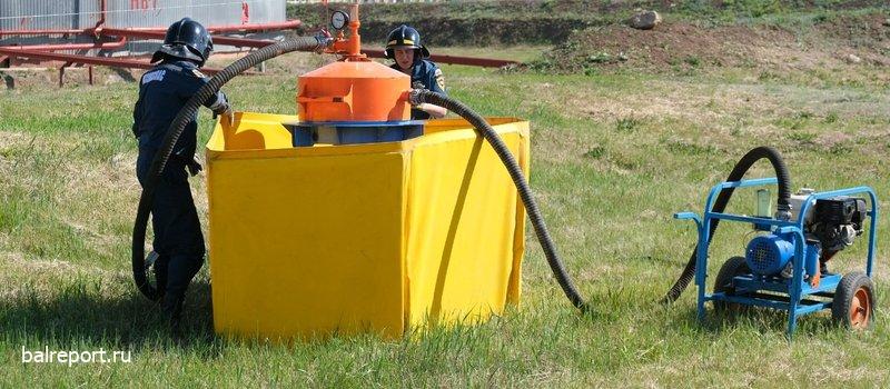 Согласно сценарию учений, при проведении регулярного обхода территории станций персонал обнаружил вскрытие сварного шва мазутного резервуара и разлив мазута, который используется в качестве резервного топлива.