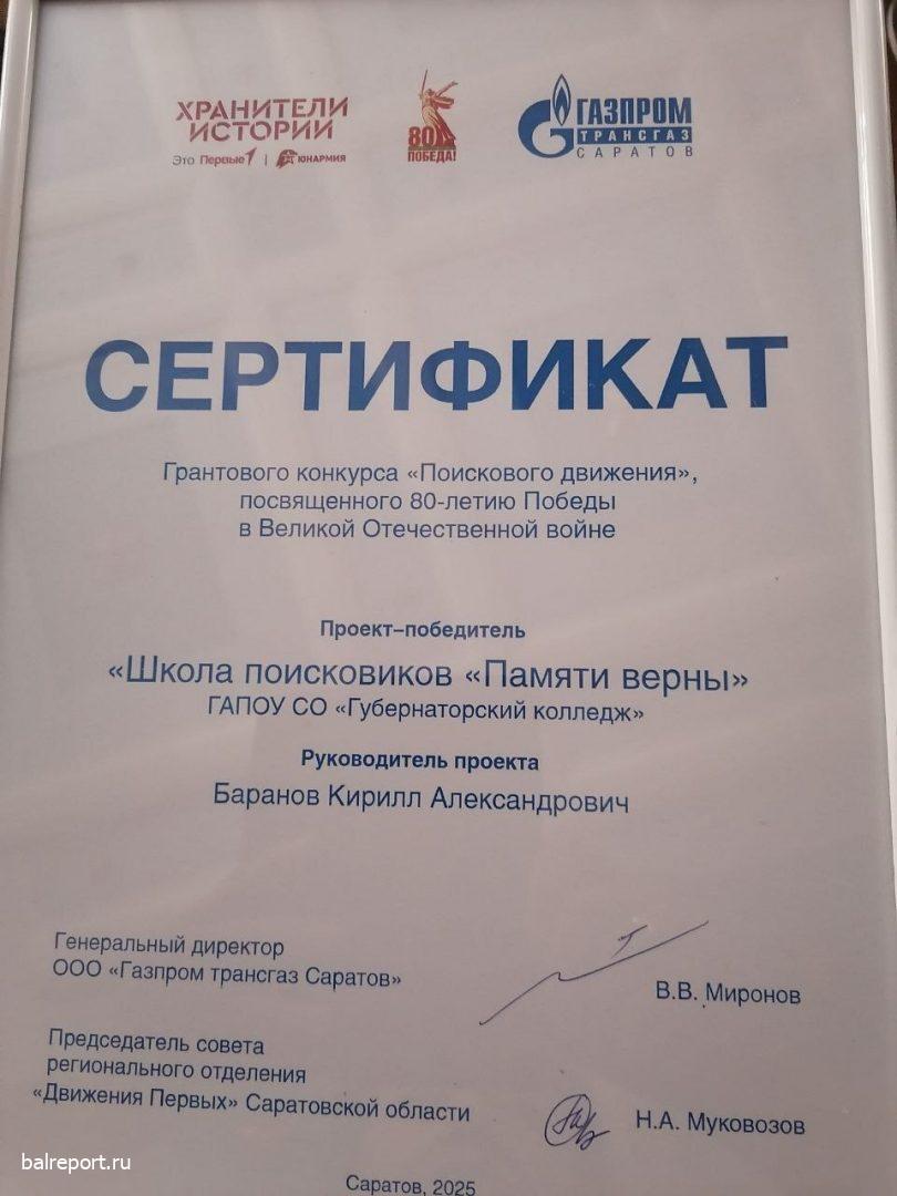 Это мероприятие посетили представители поискового отряда «Памяти верны» Губернаторского колледжа. В апреле этого года ребята стали победителями грантового конкурса «Поискового движения», посвященного 80-й годовщине Победы в Великой Отечественной войне. Благодаря выигрышу поисковый отряд закупил специальное оборудование, провел серию обучающих мероприятий и даже побывал на Вахте Памяти на территории Городищенского района Волгоградской области.