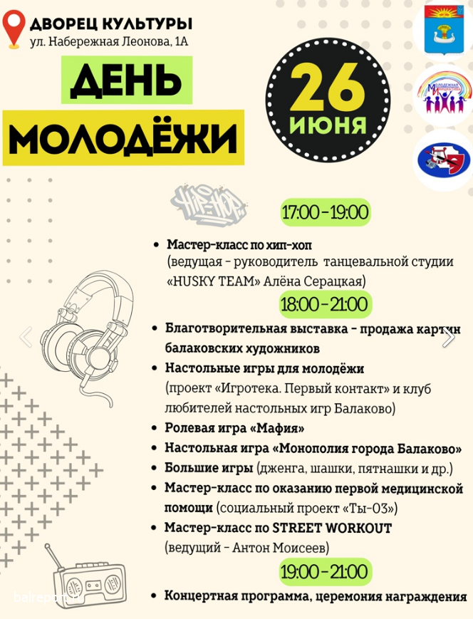 26 июня в городском парке у Дворца культуры состоится праздник, посвященный Дню Российской молодёжи