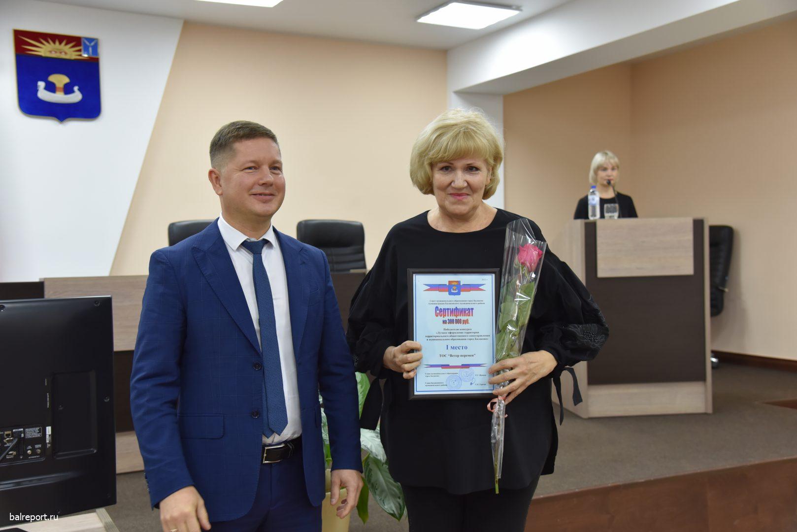 На заседании Совета МО г.Балаково были отмечены дворы и ТОСы, которые стали победителями в муниципальном конкурсе. И.о.главы города Леонид Родионов вручил представителям МКД сертификаты за лучшее оформление придомовых территорий. Так, 3 место занял двор по ул.Свердлова,3 (50 тысяч рублей), 2 место — у двора по ул.30 лет Победы,22 (75 тысяч рублей), победу одержал двор по ул.Свердлова,19 (100 тысяч рублей).