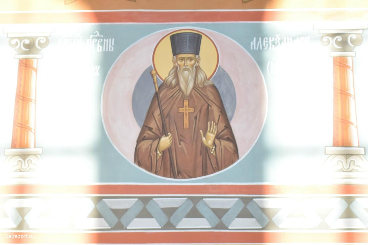 В верхней части собора роспись венчает купол. Здесь изображён Престол Божий, вокруг которого располагаются апостолы. Ниже представлены образы святых и подвижников благочестия, в том числе — сонм Саратовских святых. Среди них особое место занимает святой праведный Александр Чагринский, в церковной традиции также именуемый Александром Балаковским. В народе его с любовью называют Чагринским батюшкой. Святой праведный Александр на протяжении 38 лет нёс пастырское служение в Балаково, а завершил свой земной путь в Иверском женском монастыре Самарской земли, где был духовником сестёр. Там же ныне покоятся его мощи. Его образ в росписи — напоминание о святости, выросшей рядом с нами, на нашей земле.