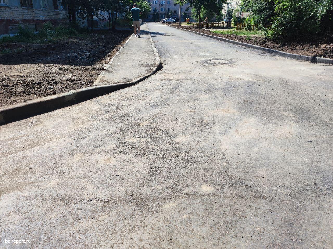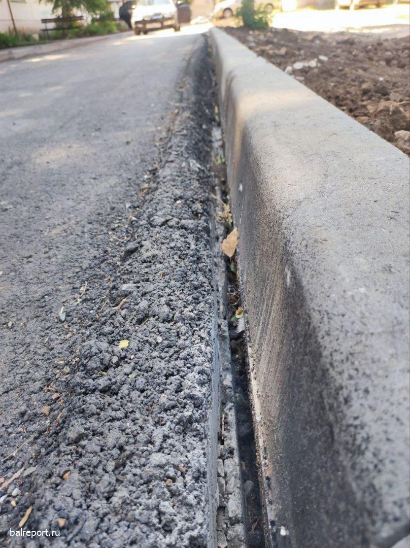 В Балакове активно проходит ремонт дворов. Объемы большие, хотя в этом году особых нареканий от жителей в адрес подрядчика практически нет. Но некоторые отрицательные моменты отметить хочется. Так, например, напротив дома 15 по ул.Вокзальной возле мусорных контейнеров вырезан кусок асфальта прямо посреди новой дороги. А возле дома 11 по ул.Вокзальной асфальт отличается от покрытия в соседних дворах. Здесь работы проводились во второй этап, и видео, что асфальт укладывали как будто засохший.