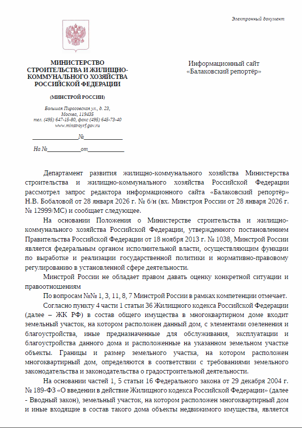 Редакция канала «Балаковский репортёр» направил в Минстрой РФ запрос с просьбой объяснить жителям города, должны ли они убирать снег с дорог, не находящихся в границах их придомовой территории? Напомним, в январе этого года, в самые снегопады, расчистку снега на дорога вдоль домов глава БМР Сергей Барулин «перекинул» на управляющие организации, аргументировав это одним словом: «должны». Саму ситуацию в Балакове ведомство не прокомментировало, сославшись на отсутствие права давать правовую оценку действиям главы БМР. Но законодательные акты и судебную практику в вопросе зоны ответственности «управляшек» дало.