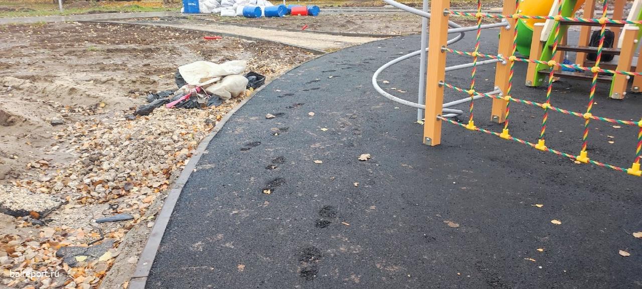Вопросы к качеству работ возникают и у родителей: детки уже облюбовали площадку, активно играют. Но на спуске с горки уже имеется яма, которая через пару месяцев протрётся до бетона. Будет ли тогда это место безопасным для игр малышей?