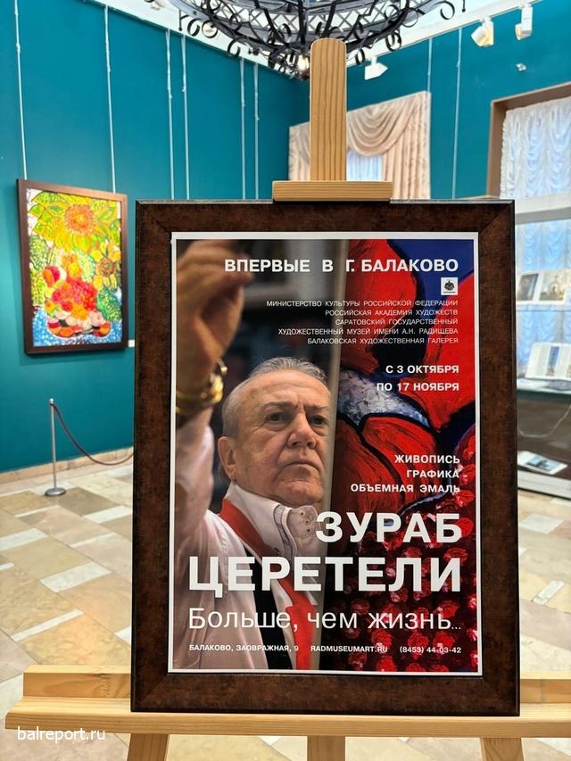 В нашем Балаковской художественной галерее (филиал Саратовского музея имени А.Н. Радищева) впервые проходит выставка Зураба Церетели «Больше чем жизнь». Представлены живопись, графика, объемная эмаль.