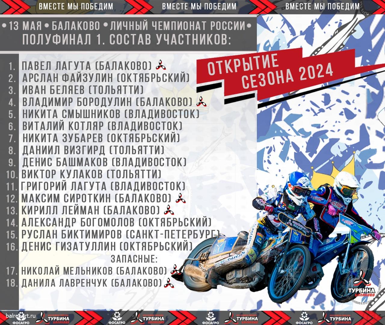 13 мая в Балакове состоится первая гонка спидвейного сезона-2024. В первом полуфинале личного чемпионата России сойдутся лучшие гонщики страны.