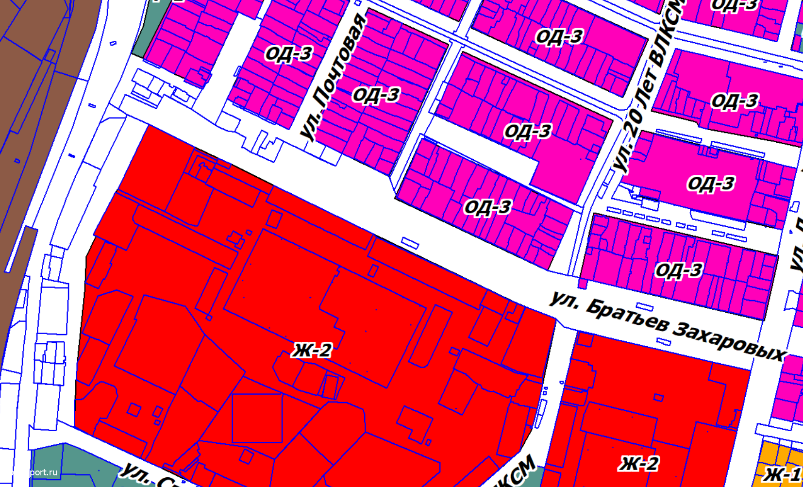 При этом в не разграниченную зону попали и частные дома, и земельные участки собственников, которые только начинают строится. Каково будет их удивление, когда им просто не дадут разрешение на строительство? Вот, например, начало ул.Братьев Захаровых: дома первой линии оказались «в белой зоне», нарушая единую линию застройки, хотя давно там стоят.