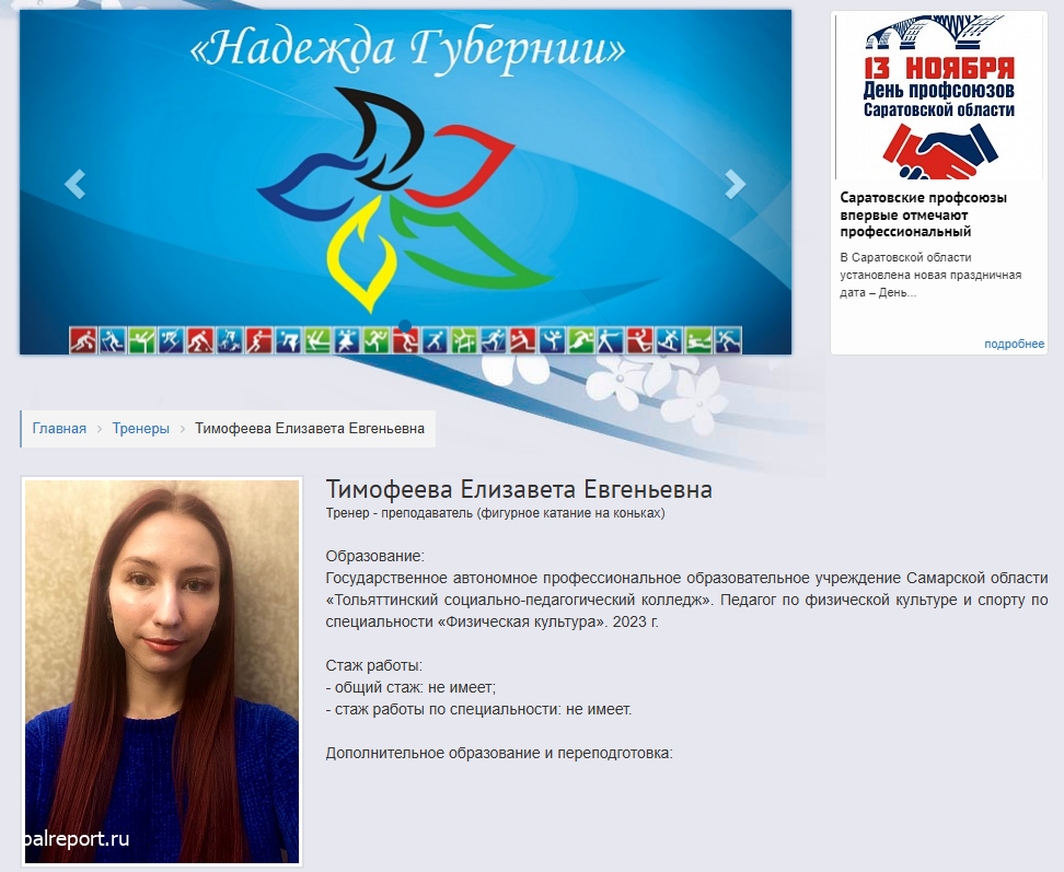 Тренером ребят стала Елизавета Тимофеева — спортсменка, которая ранее занималась фигурным катанием и выступала в Вольске. По образованию она — педагог по физической культуре и спорту по специальности «Физическая культура», числится тренером-преподавателем в областной спортшколе «Надежда губернии», но секцию в Балакове открыла в качестве члена некоммерческой спортивной организации.