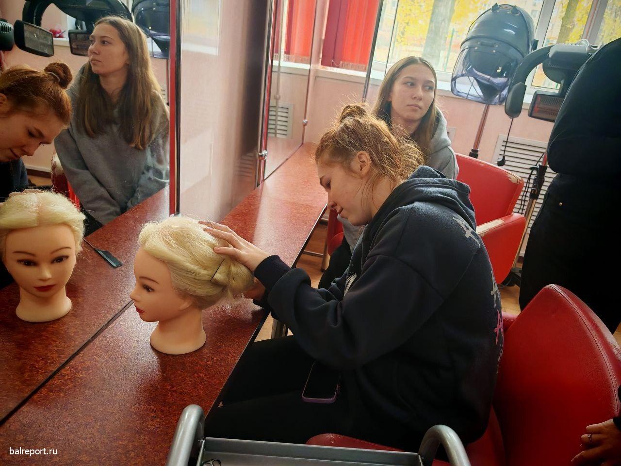 По компетенции «Специалист индустрии красоты (парикмахер)» девочки окунулись в мир парикмахерского искусства и выполняли прически под чётким руководством преподавателя и студенток — будущих специалистов.