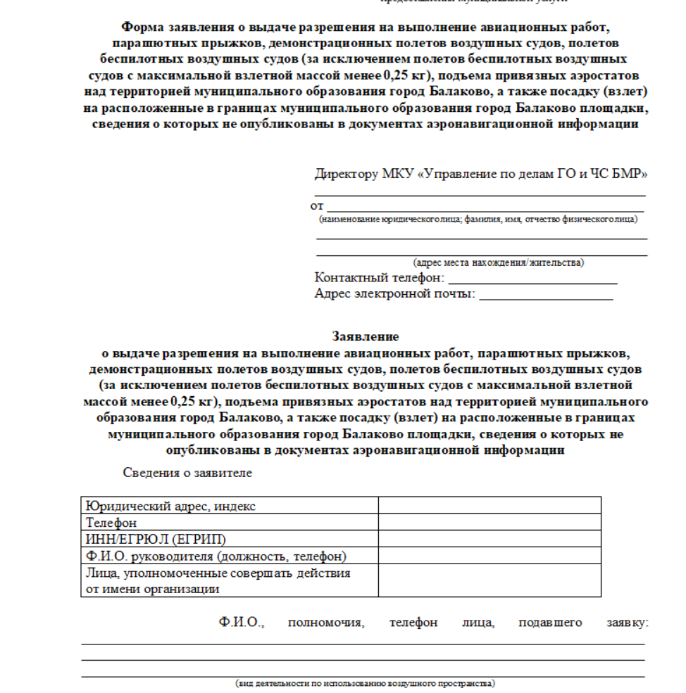 В администрации Балаковского района разработали новый регламент по выдаче разрешений на выполнение авиационных работ, парашютных прыжков, демонстрационных полетов воздушных судов, полетов беспилотных воздушных судов (за исключением полетов беспилотных воздушных судов с максимальной взлетной массой менее 0,25 кг), подъема привязных аэростатов над территорией г.Балаково, а также посадку (взлет) на расположенные в границах г.Балаково площадки, сведения о которых не опубликованы в документах аэронавигационной информации.