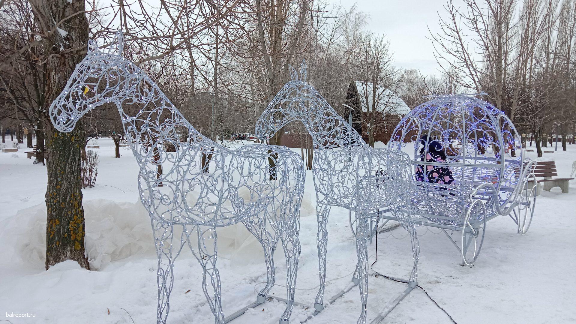 А сегодня специалисты подключали светящиеся фигуры. К прошлогодним Снеговикам и Оленям в этом году присоединились большие ёлочные шары, часы и карета, запряжённая лошадями. Электрики проверят систему подключения и обещают сегодня вечером уже зажечь все новогодние фигуры. Приходите посмотреть и сделать яркие фото!