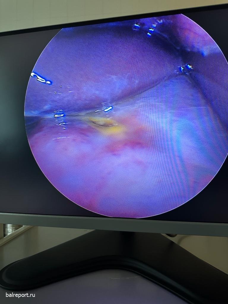Балаковскими хирургами была выполнена лапароскопия, при которой удалось визуализировать как само перфоративное отверстие двенадцатиперстной кишки, так и масштаб последствий, в виде серозно-фибринозного перитонита. Далее последовала санация брюшной полости, после чего пациенту выполнили ушивание перфоративного отверстия.