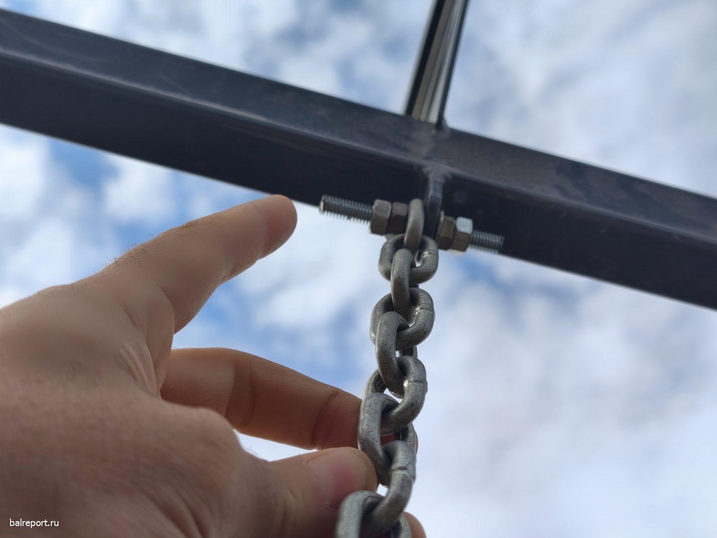 Круговые качели тоже не выдерживают критики: здесь крепления в виде непрочных болтов, которые навряд ли долго выдержат вес взрослых людей. Некоторые из них уже меняли — видимо, опасения отдыхающих о непрочности конструкции обоснованы.