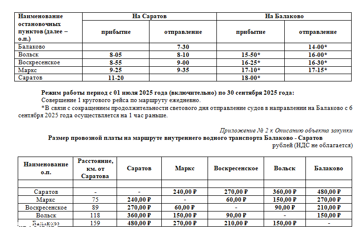 Объявлен аукцион на оказание услуг по перевозке пассажиров скоростными судами на подводных крыльях на территории Саратовской области в навигационный период 2025 года по маршруту «Балаково-Саратов». Сроки услуги — с 1 июля по 30 сентября. Напомним, ранее проведённый аукцион определял срок оказания услуги до 30 июня, теперь же — до конца сезона.