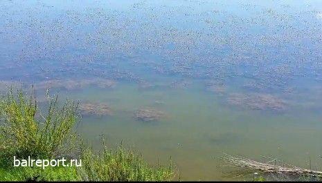 Водоём обмелел настолько, что поливная вода льётся с ошмётками ила, грязная. В пруду из-за малого количества воды разрастается тина.