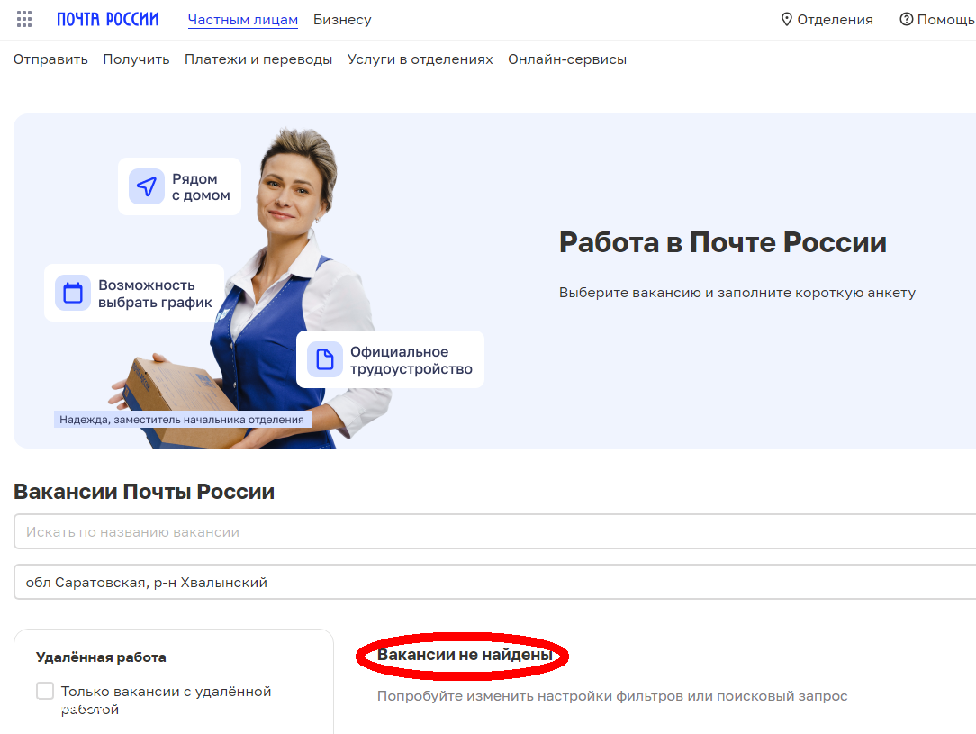 Отметим, что на сайте Центра занятости Хвалынского района мы не нашли вакансий УФПС, поэтому не смогли узнать — какую зарплату там предлагают. А вот в Балакове почтальона мобильной группы, который будет доставлять адресатам корреспонденцию, приглашают на зарплату от 17 до 30 тысяч рублей (из требований непонятно, от чего зависит зарплата — в двух вакансиях обязанности одинаковы, а оплата разная).